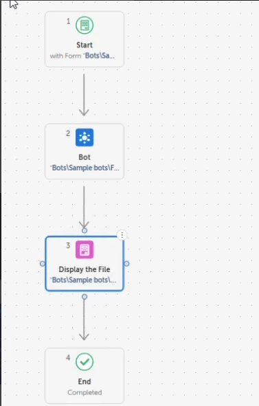 1. Process created: Select form → Select BOT task → Assign values from form to task.