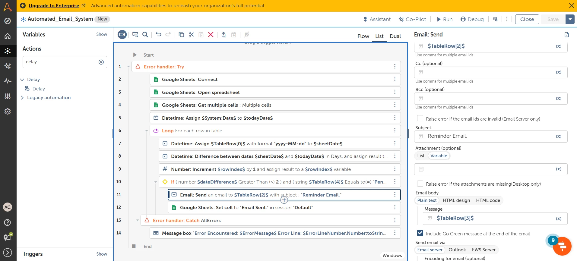 The automation is sending emails to the email ids in a google sheet.