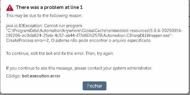 I'm trying to use the action to make the bot open the browser, but when I add the action and try to use it to select the program, the following error message appears: