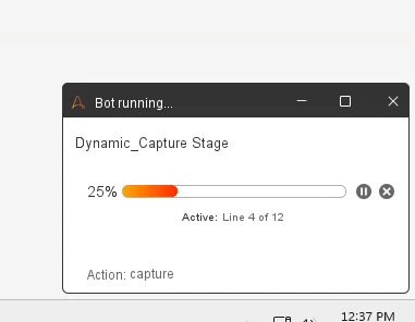 Hi All, Is there a way to hide the Bot Running… tile when running bot manually. I am trying to compare a scree capture so it will be more accurate if I can exclude the tile in the capture action. Thanks!