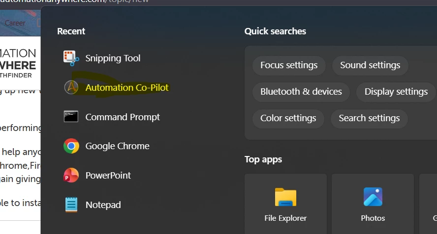 @mdfuad17724 You must install and enable the Automation Anywhere extension in your browser.