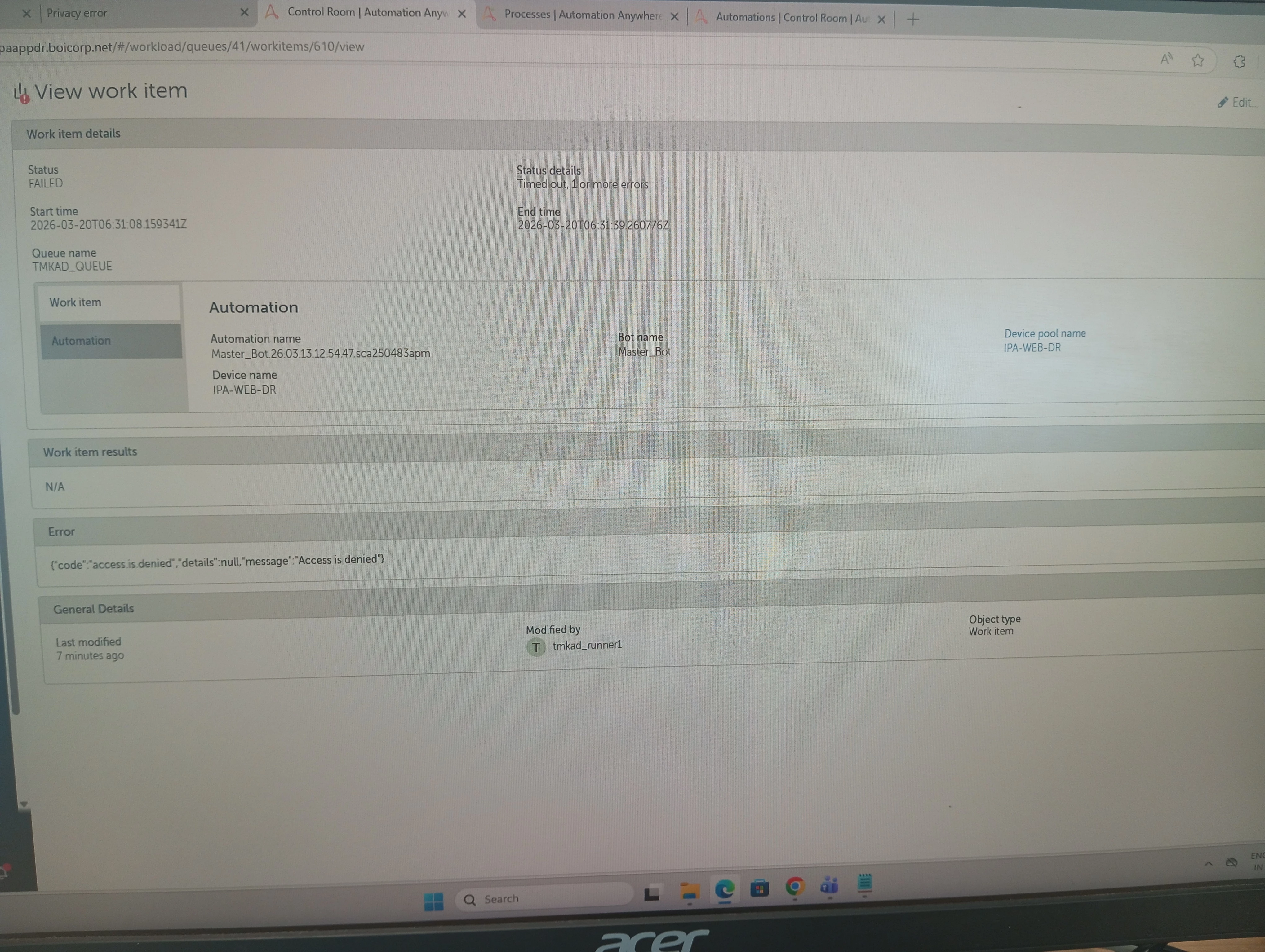Access is denied TMKAD_runner 1 RDP was working correctly before with the same queue