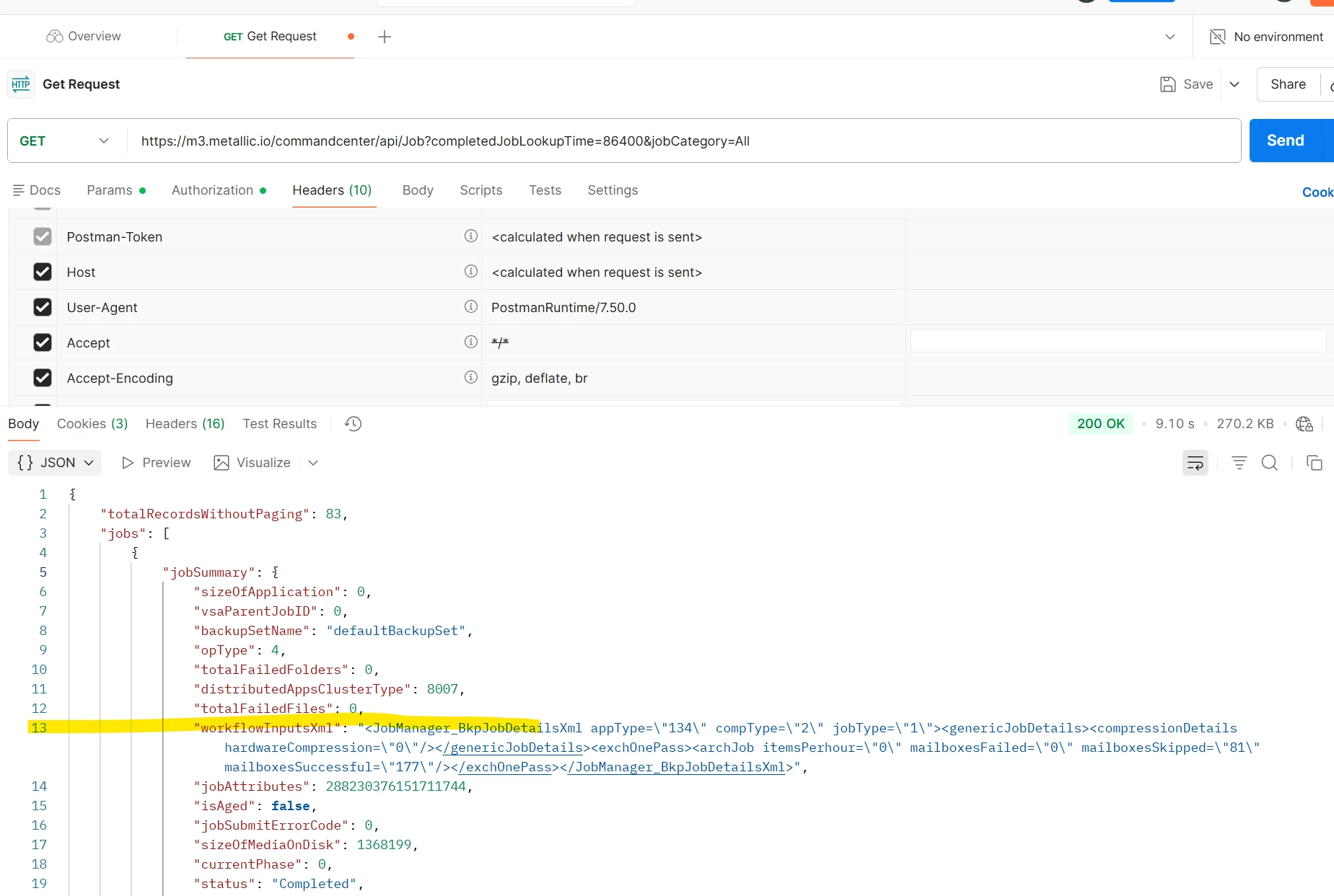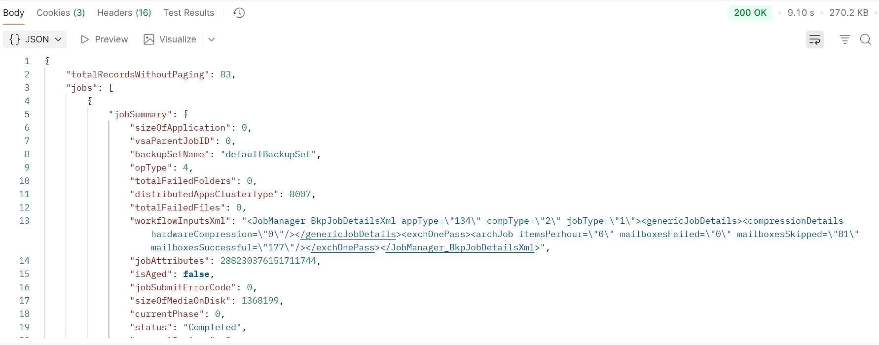 does this because of the API response (postman) contains invalid JSON due to unescaped XML content within the JSON string → line 13
