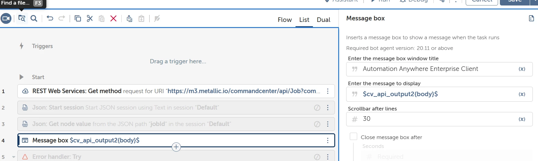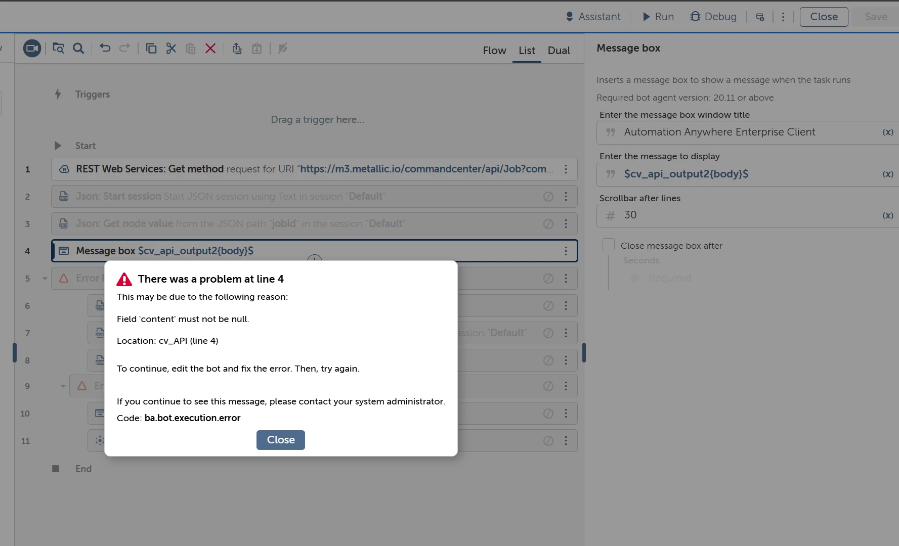 @DanC25 That message from the Message Box action just means the variable is empty, which you already know.