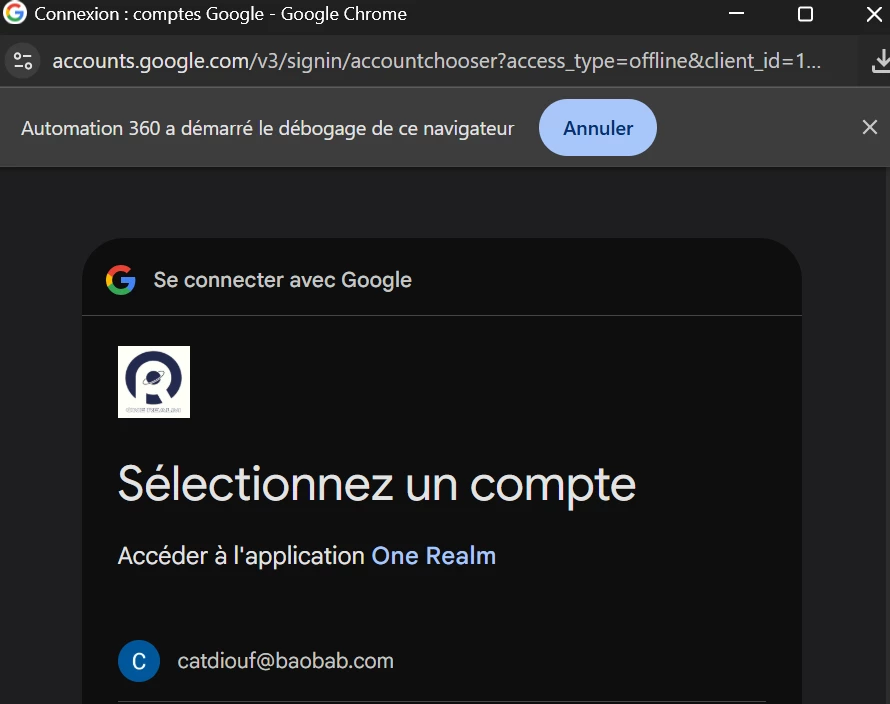 When I create an AI agent on https://ai.automationanywhere.com/ and try to connect it to Google Sheets, I'm redirected to the OneRealm login page (see screenshot). Is it possible to change the redirection to OneLogin instead of OneRealm?