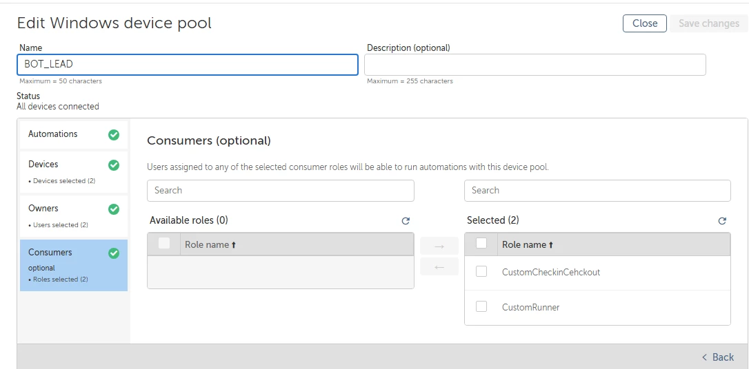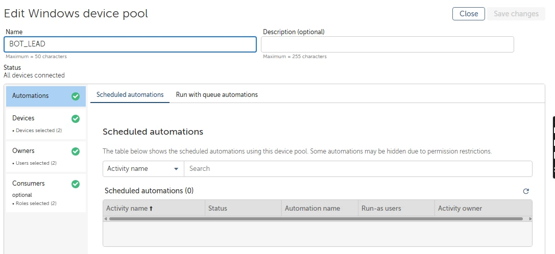 I have two unattended runners (botrunner and botrunner3), and I need to complete 400 tasks every day. I have divided these tasks equally between the two runners, giving each 200 tasks. I want to create a device pool to manage the workload efficiently.