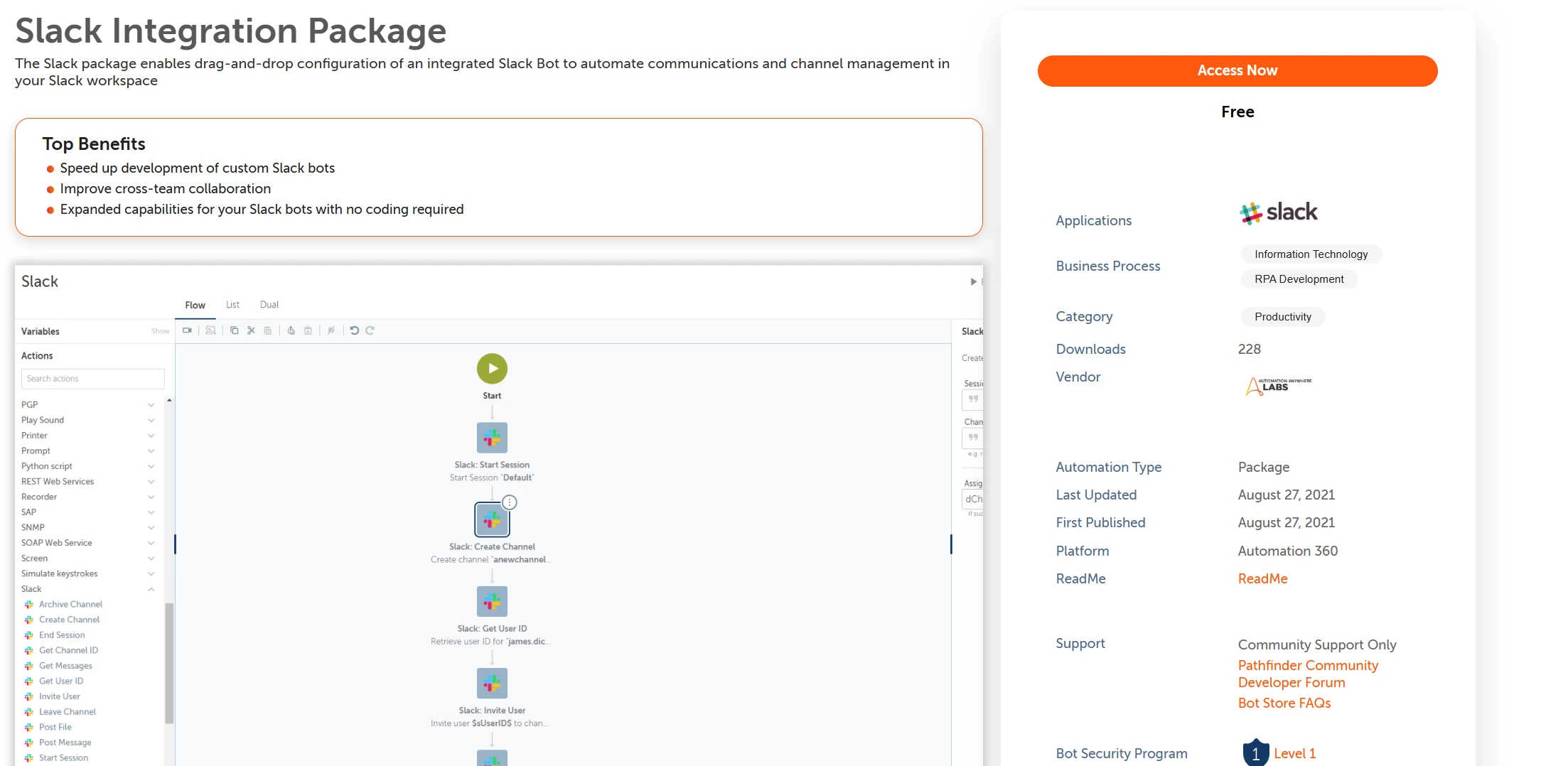 • The bot was removed from the private channel (Post succeeds internally, but Slack rejects with not_in_channel → A360 swallows the warning).