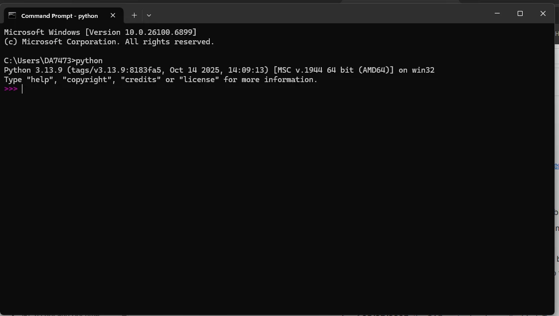 If you launch a command prompt and type “python” at the prompt and press Enter, does it launch the Python command line interface?