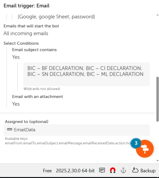I have an issue. The email trigger for every incoming mails despite the conditions that I have set. If someone have an idea please.