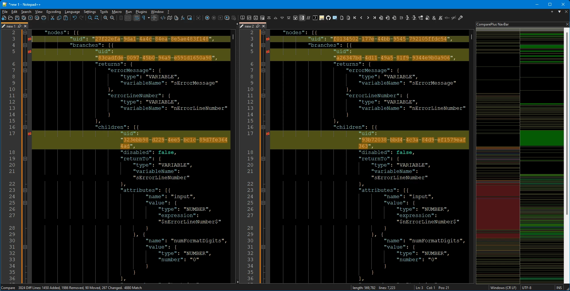 Having a “diff” functionality is challenging as elements, like Task Bots, are stored as long JSON strings. You could use a tool like WinDiff or Notepad++ with the Compare plugin, but it’s still going to be difficult to read the JSON if you don’t look at it often.