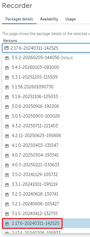 5. Here you will see which version of the Recorder package the taskbot is using.  You can also change the version here [assuming you have checked out the taskbot file].
