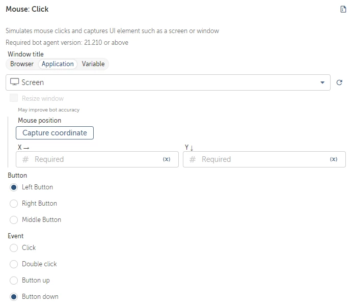 @jerinjoy You can capture coordinates from objects by using a Recorder: Capture → Get Property → and getting the X and Y coordinates from there. Some adjustments to the coordinates may be necessary going from HTML coordinates to Mouse package coordinates.
