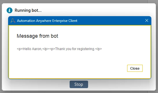 The value of $sMergedEmail$ is now: <p>Hello Aaron,</p><p>Thank you for registering.</p>