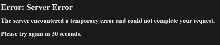 Now we get a Server Error message: