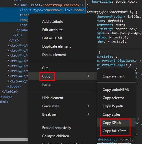 This is helpful but I have the situation is there are multiple tables available on webpage and checkboxes are having same path
