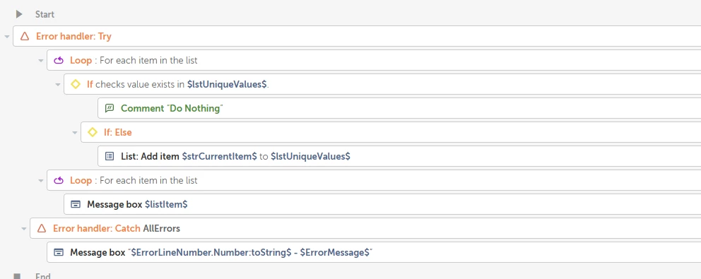 4. Check for if the value is present in lstUniqueItems: If  No → Add it