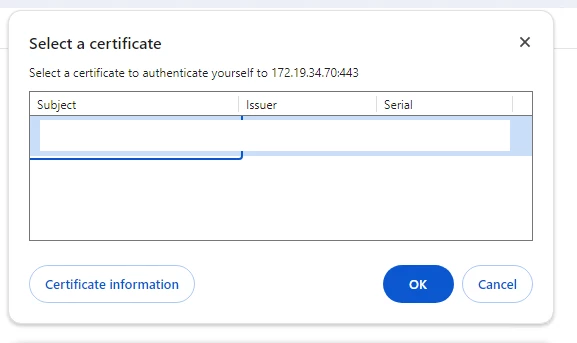 has anyone tried if you can interact with the select certificate screen in google chrome? we want to select the correct certificate and click ok to continue.