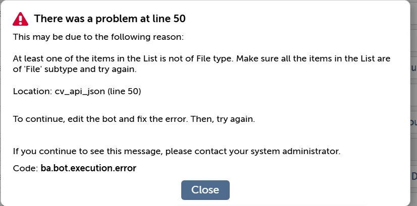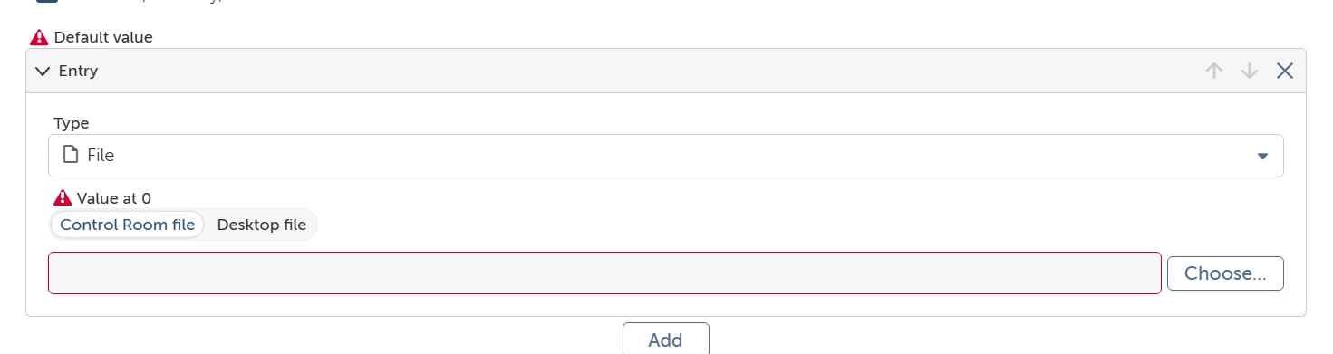 I created a List variable with subtype String and added the $sfname$ variable as a value, but I got an error saying “at least one of the items is not of file type.”
