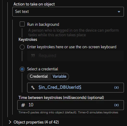 I have using recorder to set text in textbot and value is credential type when setting to textbox the value is incorrect.