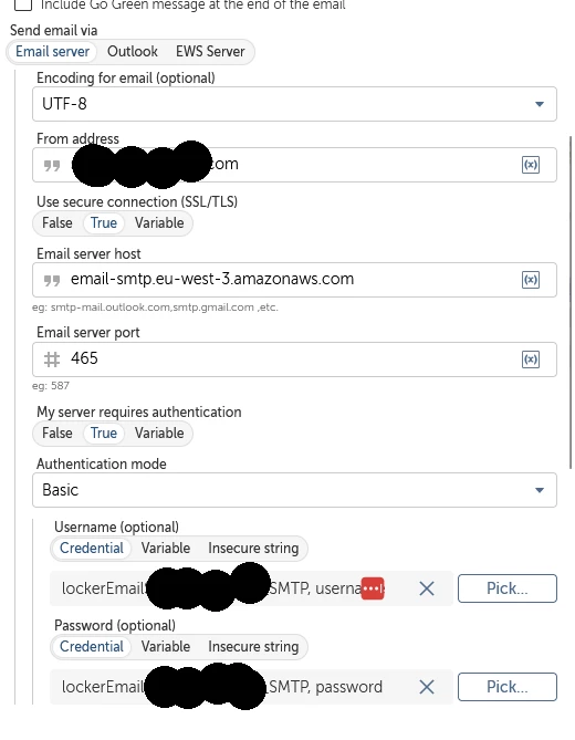 I have an SMTP server email-smtp.eu-west-3.amazonaws.com with credentials.