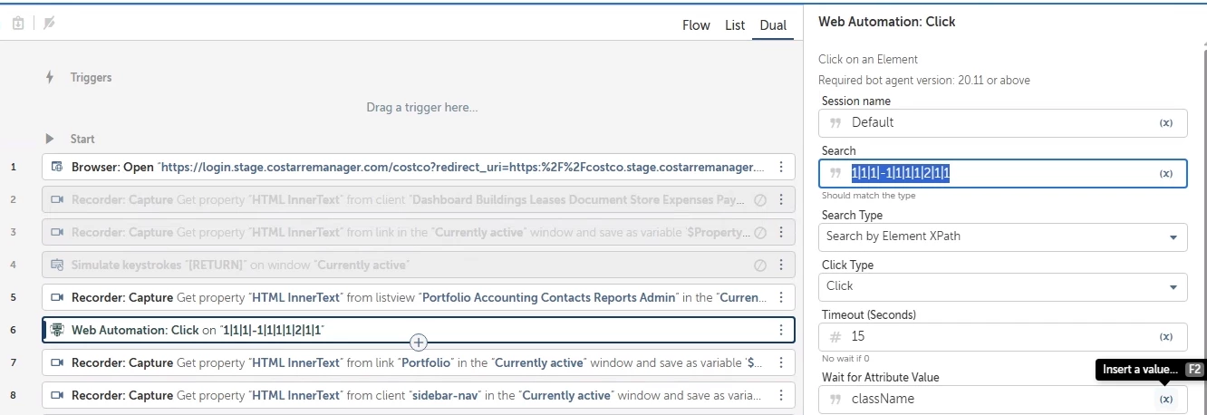 I am using a recorder in AA 360. My first capture I am using Get Property >>>HTML Inner Text and have this in my inner text list [ Portfolio, Accounting, Contacts, Reports]. Can I use Web Automation: Click Action to search a specific Inner Text? If yes please elaborate. I am new to the platform. Thank you!