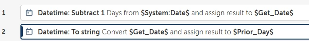 Could anyone help with this? I need to save a workbook with a filename that includes yesterday’s date (Today − 1). I can compute T-1 using Date & Time → substract to date and store it in a variable—that part works.